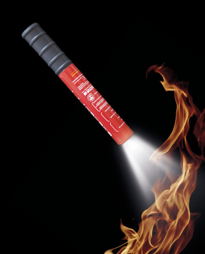 L’utilizzo del getto della polvere di potassio - un metodo unico tra gli estintori - include la vaporizzazione della polvere nell’ambiente seguita dalla condensazione delle sue sostanze estinguenti. Il prodotto funziona con l’interruzione della reazione a catena del fuoco (l’autocatalizzazione del fuoco). Il dispositivo contiene all’interno una carica estinguenti di minerali solidi stabili; non contiene gas e non è pressurizzato. Il getto di aerosol è prodotto solo quando l’innesco è sfregato con la sua base. Il getto prodotto è essenzialmente un sale inerte che emette gas già presente nell’atmosfera.